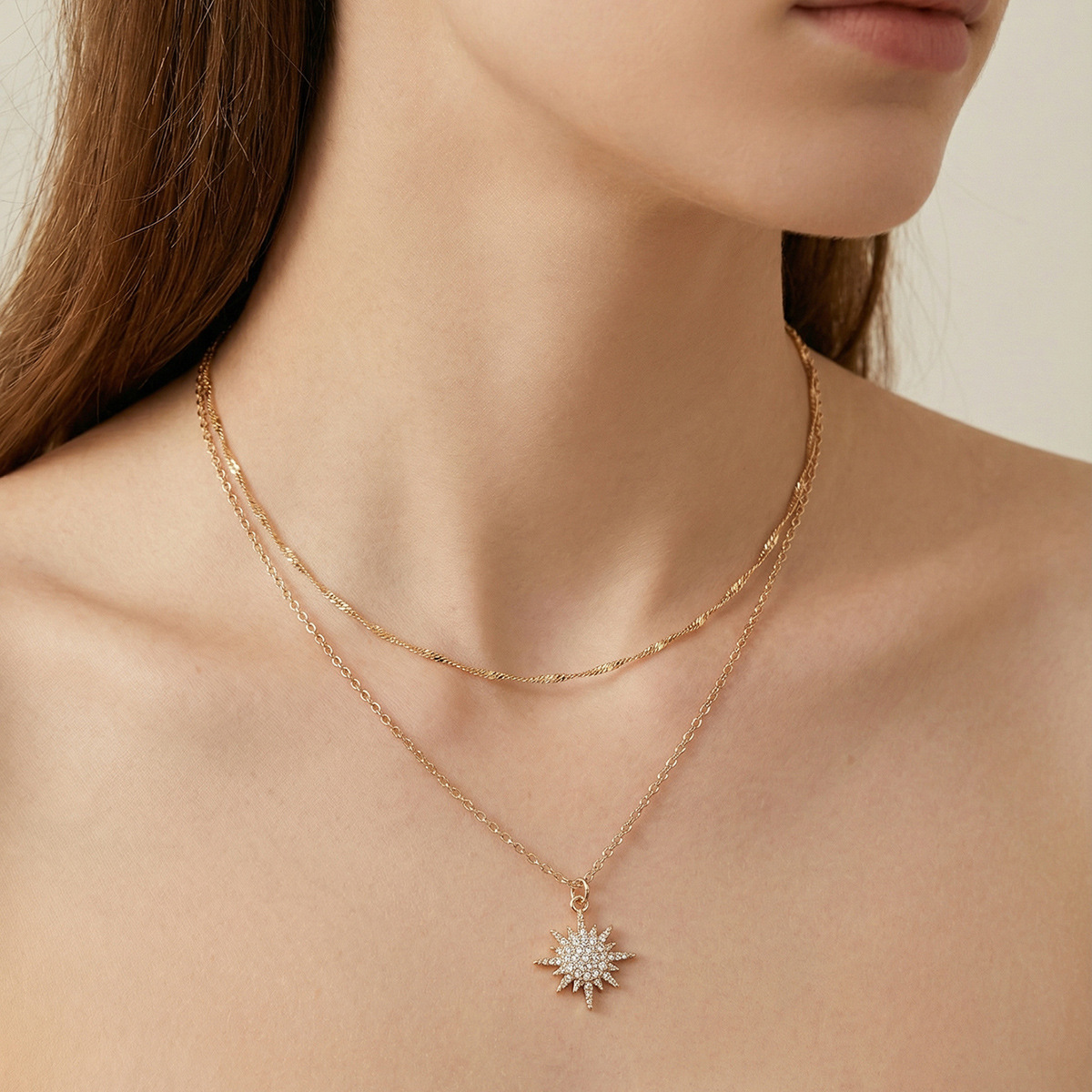 European and American foreign trade New Mother's Day gift diamond sunflower multi-layer necklace 2019 cross-border new accessories