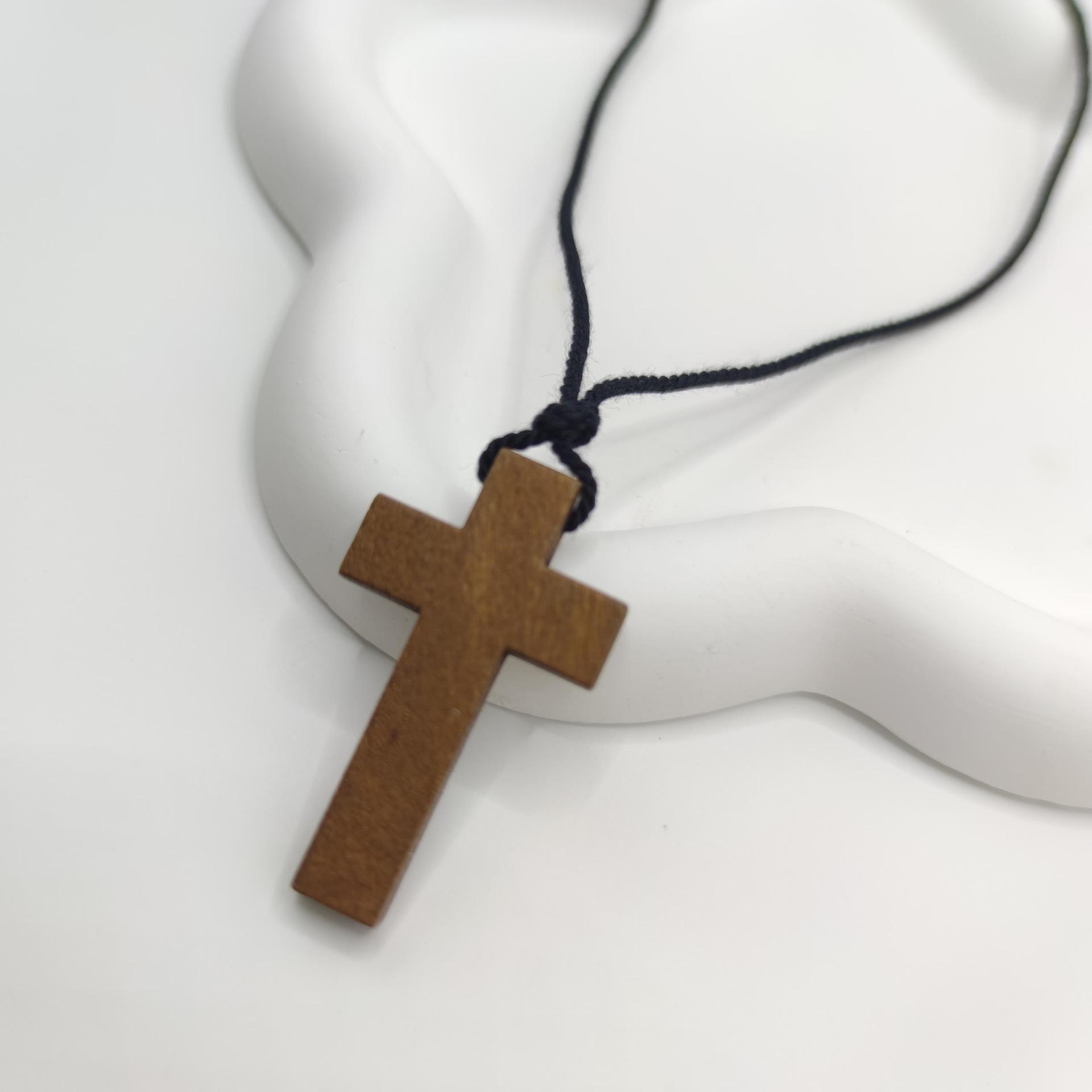 Amazon's New Cross-Border Best-Selling Wooden Braided Rope Cross Necklace Religious Pendant for Men and Women Wholesale