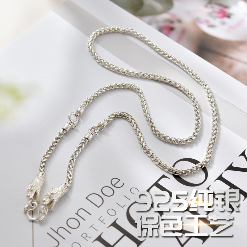 925 Dragon Scale Twist Chain Silver Sterling Silver Thai Buddha Brand Chain Tag Pendant Long Chain Silver Necklace