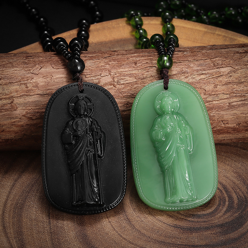 Cross-Border Hot-Selling Religious Gifts Imitation Jade Buddha Guardian Buddha and Bodhisattva Pendant Antique Jade Guardian Necklace Wholesale