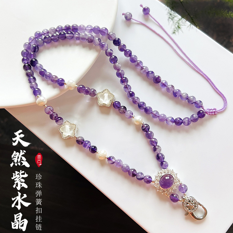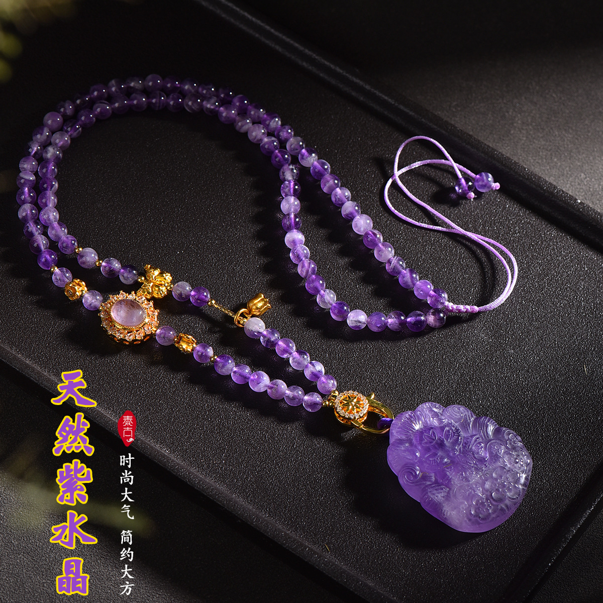 Thai Buddhist Amulet Chain Thangka Hanging Pendant Necklace Dreamy Amethyst Necklace Xizang-Style New Chinese Sweater Chain