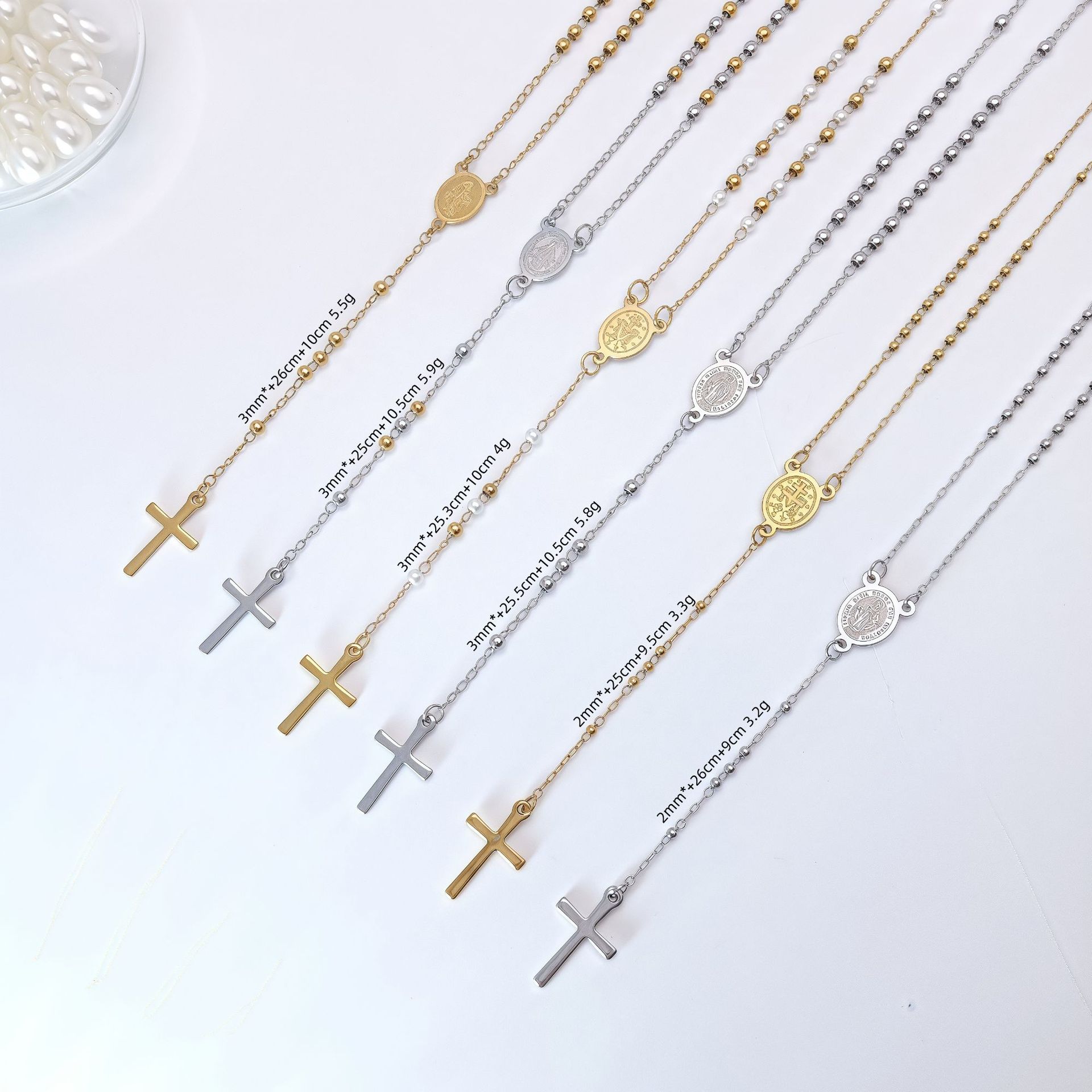 Guangdong-Made Cross-Border Hot-Selling 59 Steel Wave Bead Chain Stainless Steel Rose Beads Buddha Beads Rosary Necklace Religious Cultural Ornaments