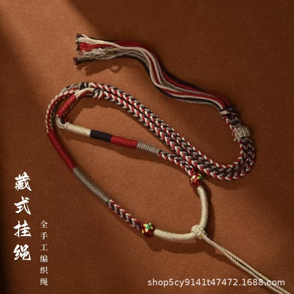 Xizang Hand-Woven Eight-Strand Rope Thangka Pendant Rope Buddha Amulet Necklace Rope Beeswax Jade Pendant Rope Sweater Chain