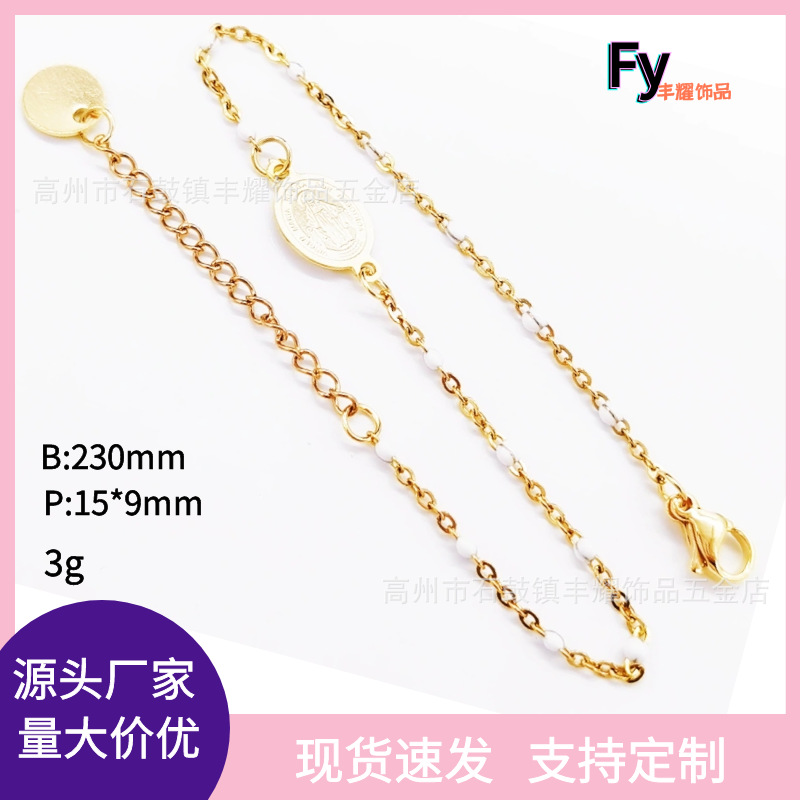 White/Gold Stainless Steel Oil Dropping Bracelet Rice Bead Bracelet Glue Dropping Chain Religious Bracelet Chain Cross Border Hot Sale