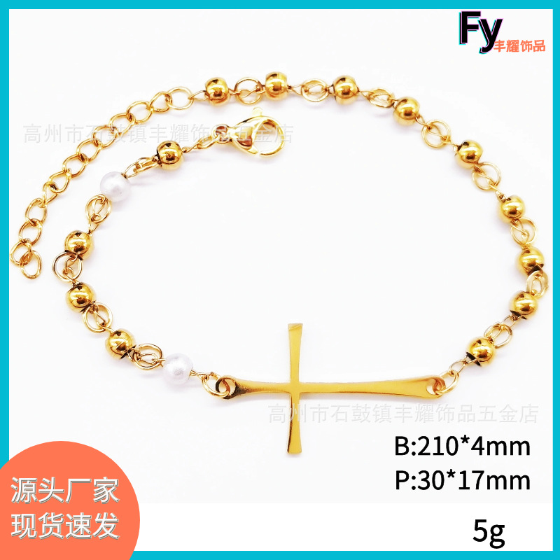 4mm Pearl Stainless Steel Beads Handmade Curved Brand Bracelet Cross Border Hot Religious Bracelet Cross Bracelet