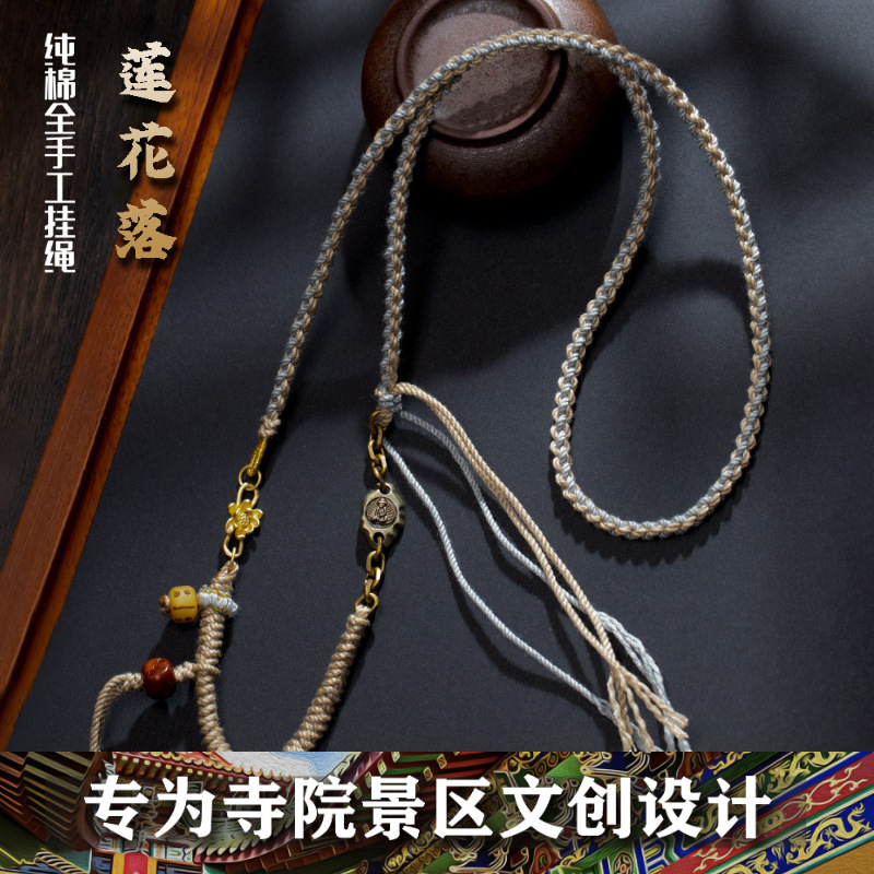 Five-Way God of Wealth Necklace Xizang Handmade Braided Rope Cotton Thread Skin-Friendly Eight-Strand Braided Pendant Hanging Rope Buddhist Amulet Thangka Hanging Rope
