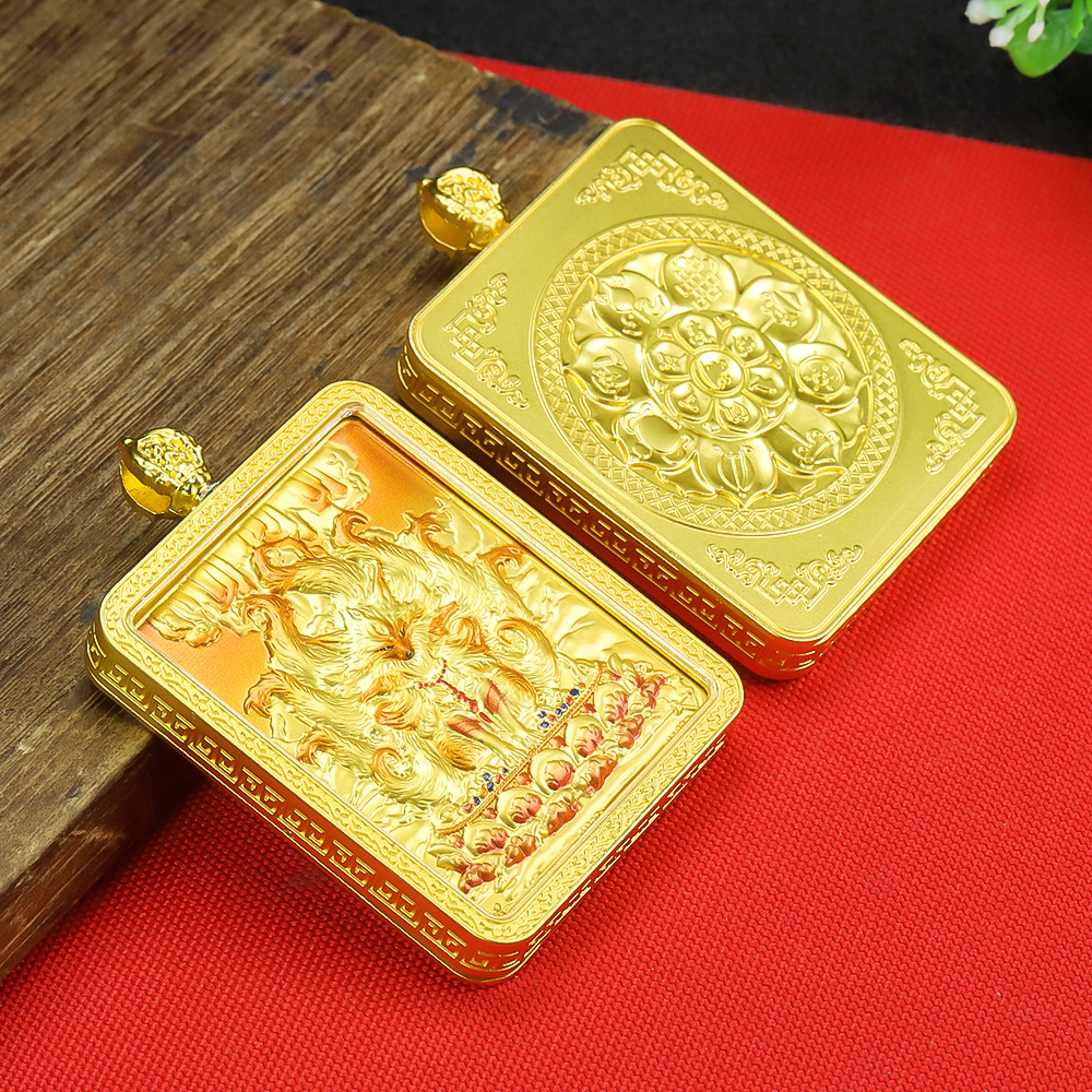 Hand-Painted Colored Gold Core Wutai Mountain Wuye Double-Sided Three-Dimensional Relief Thangka Pendant Necklace Painted Buddha Amulet Wholesale