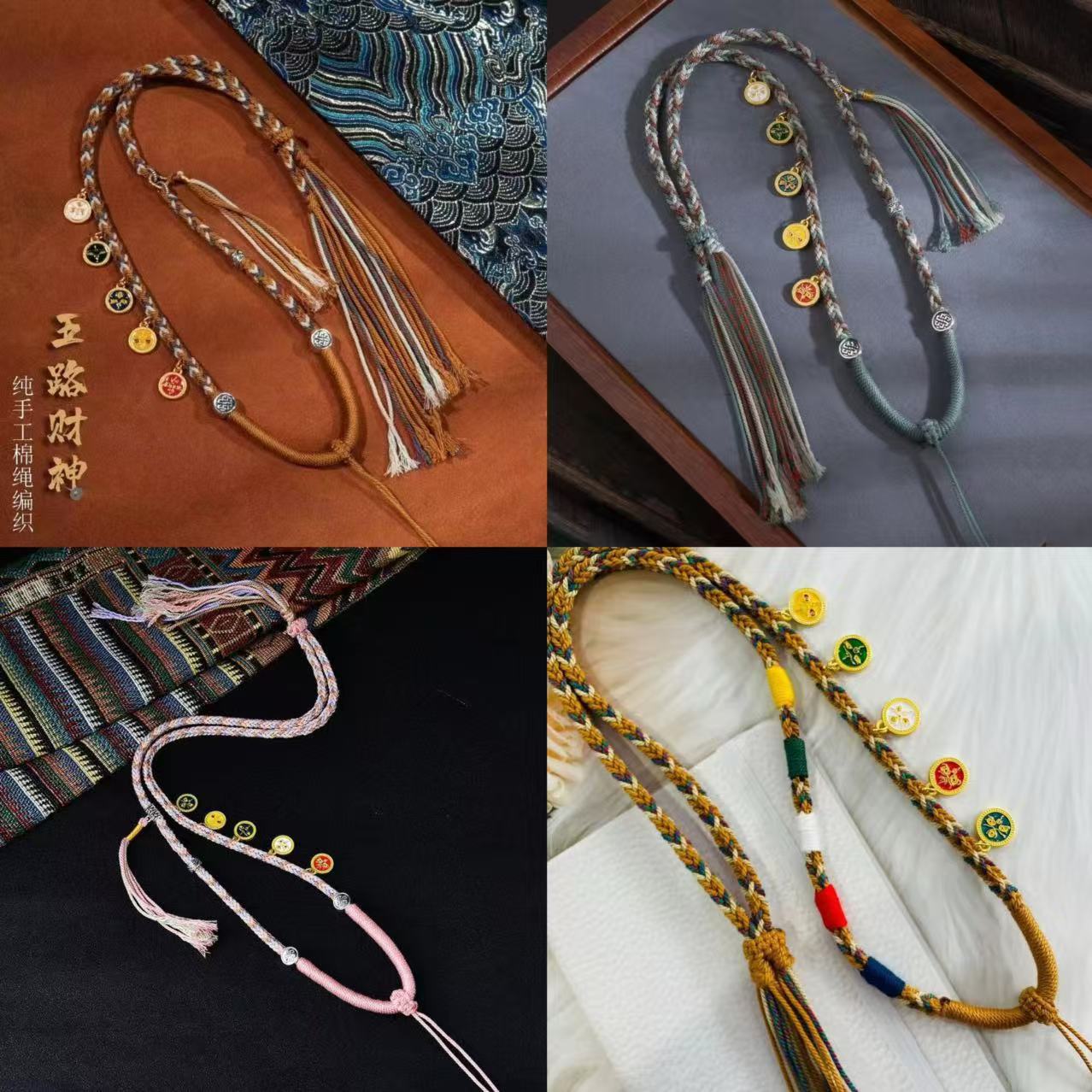 Xizang Style Hand-woven Five-way God of Wealth Necklace Hand-rubbed Cotton Sagittarius Necklace Rope Thangka Lanyard Buddha Pendant