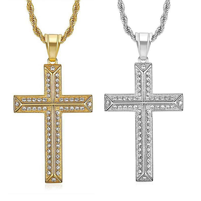 European and American Cross-Border New Religious Jewelry Titanium Steel Gold-Plated Diamond Cross Pendant Necklace