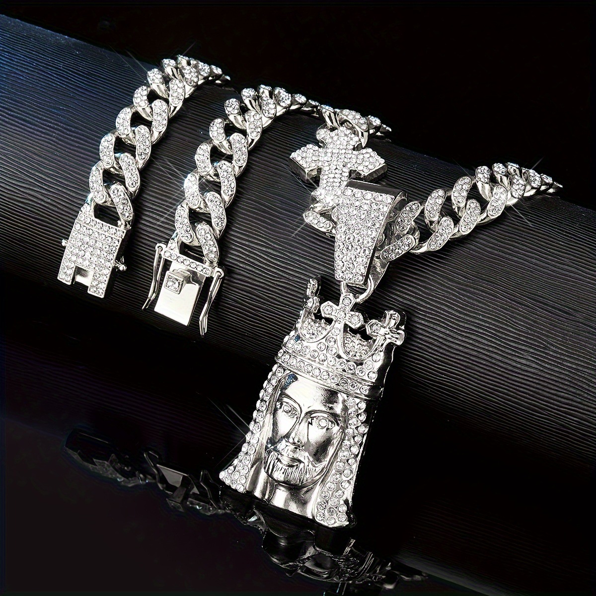 Classic European and American Hip-Hop Necklace Men's Cross-Border Religious God Head Pendant Alloy Inlaid Rhinestone Pendant Jewelry