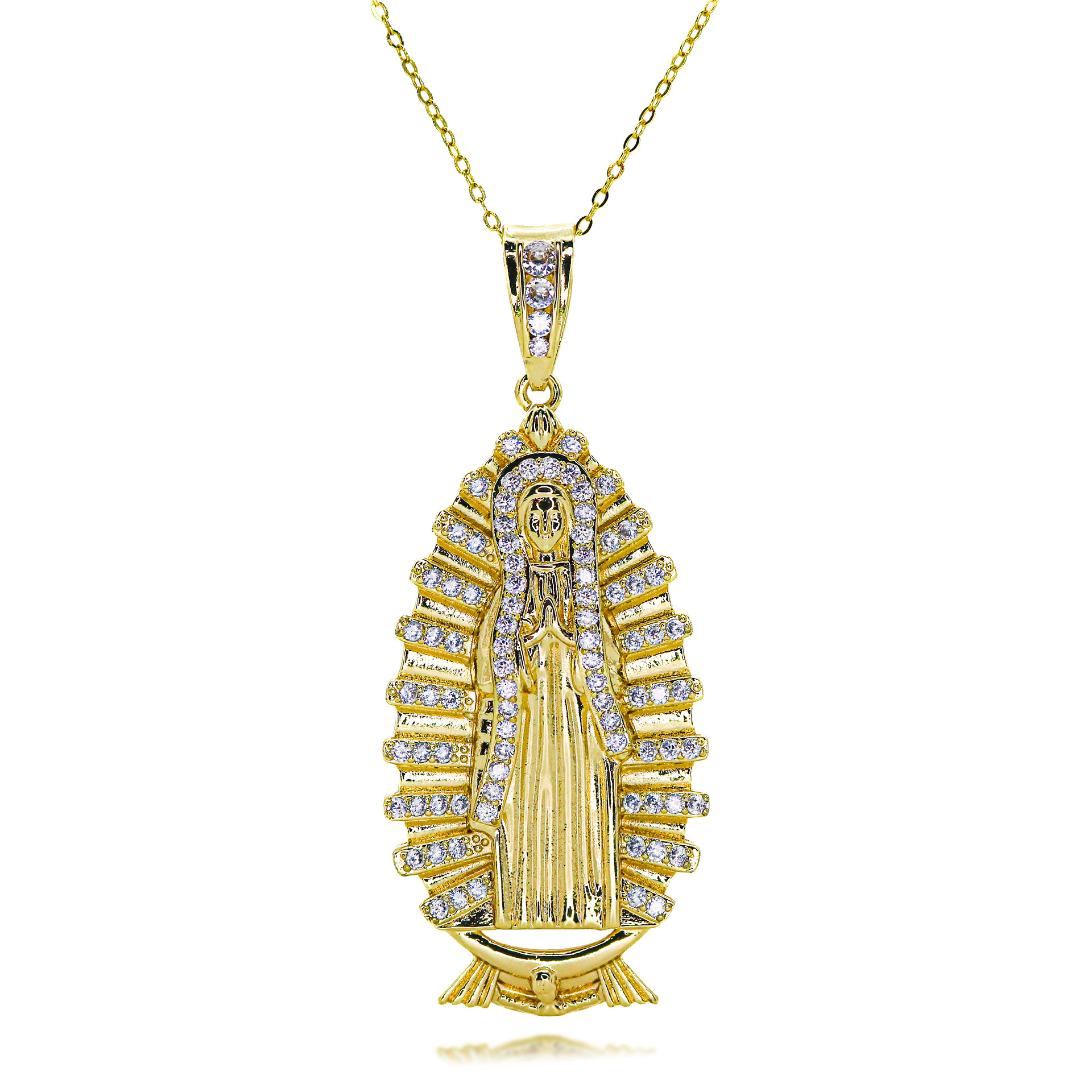 Extra Large European and American Cross-Border Religious Personalized Statue Clavicle Chain Zircon Catholic Virgin Pendant Necklace Copper Plated 18K