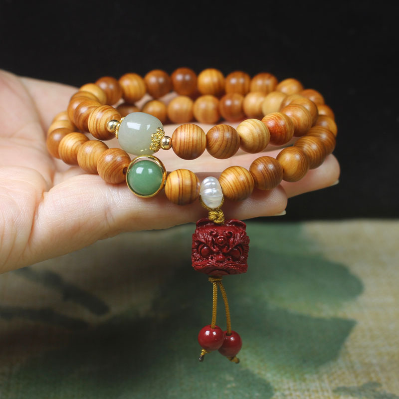 High oil cypress 8mm double bracelet bracelet lion pendant men's and women's literary play beads beads factory wholesale