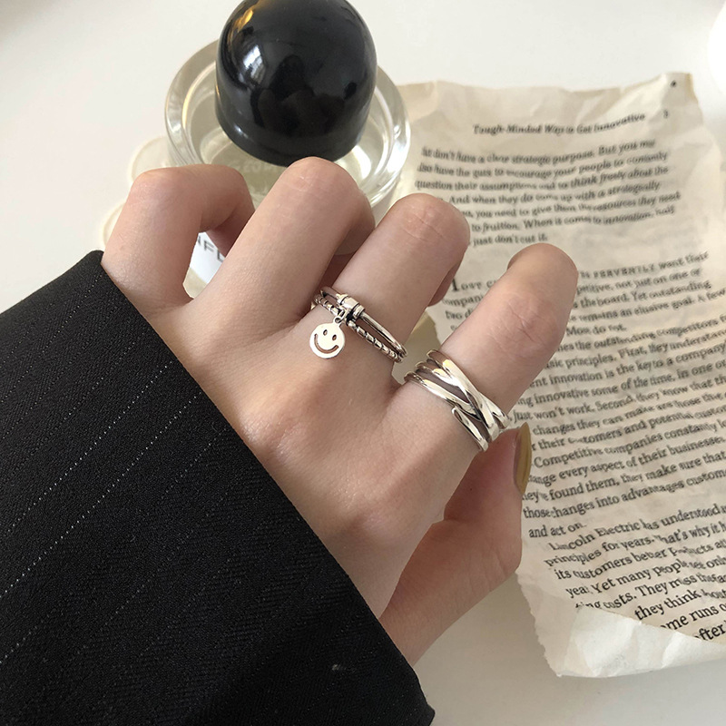 925 Silver Plated Ring for Women, Fashionable and Personalized Hip-Hop Ins Trend Popular Cold Style Open Index Finger Ring for Men