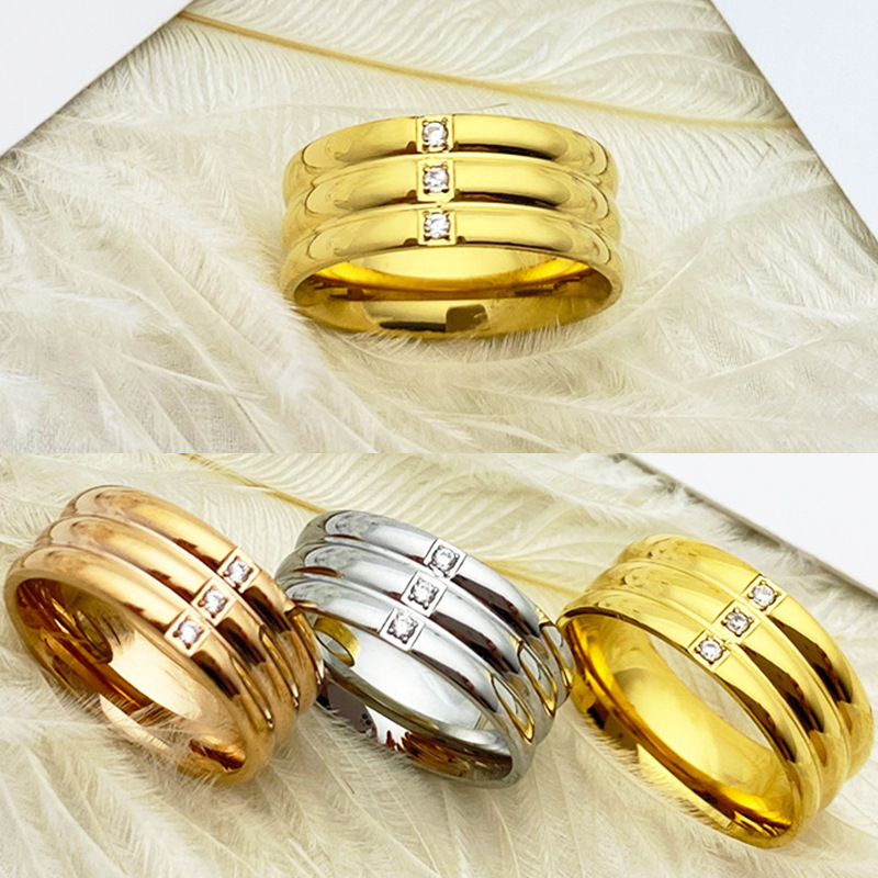 Cross-Border Stainless Steel Micro-Inlaid Diamond Ring, Women's 18K Gold Zircon Ring, Men's Geometric Minimalist Style Couple's Jewelry Factory