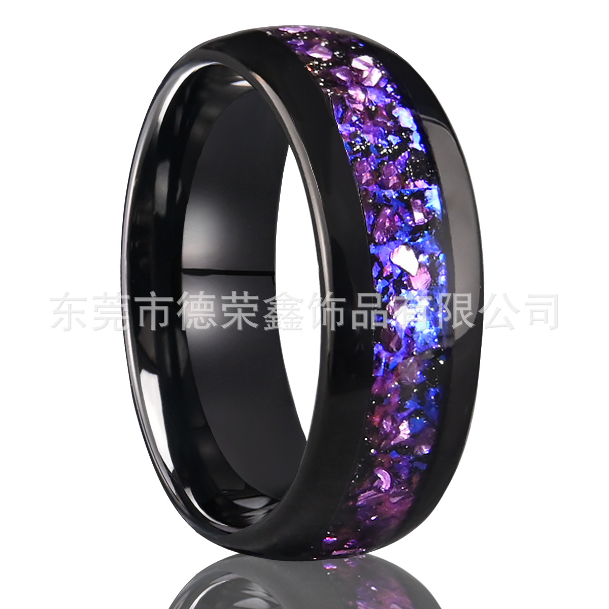 Cross-border selling 8mm/4mm purple galaxy gravel tungsten steel ring Europe and the United States popular in stock men and women