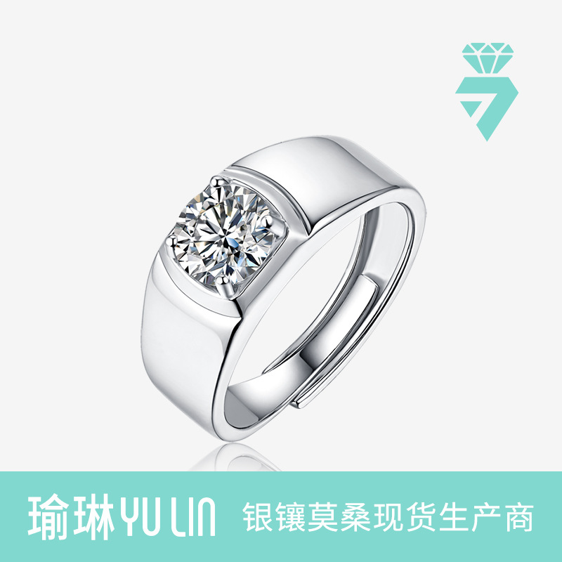 S925 Sterling Silver Inlaid with Moissanite One Carat Ring Simple Men's Ring Accessible Luxury Couple New Ring Silver Hand Jewelry