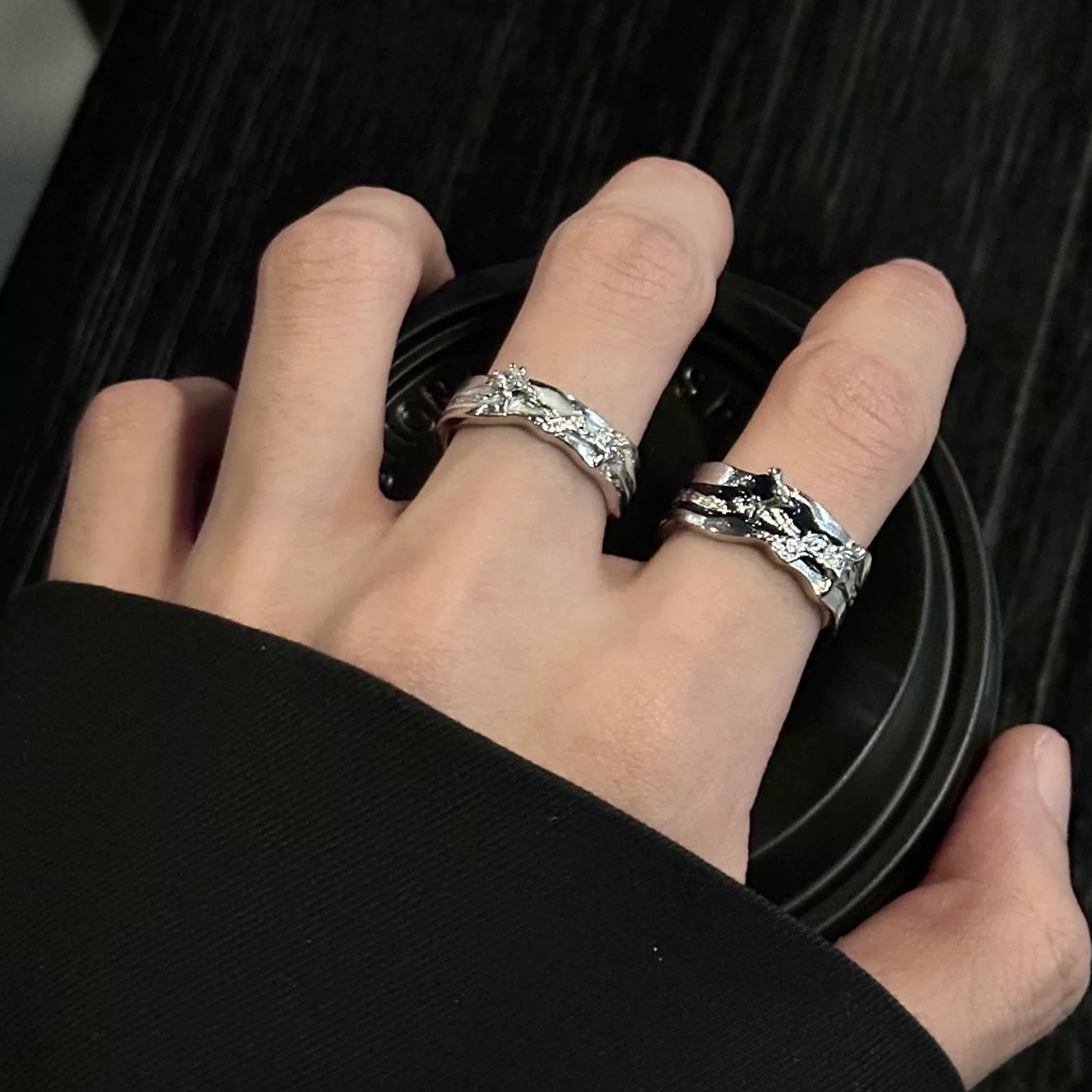 Cross-Border Popular Alloy Ring Sandblasted Simple Wave Pattern Men's and Women's Tail Ring Ring Little Finger Ring Manufacturer Wholesale