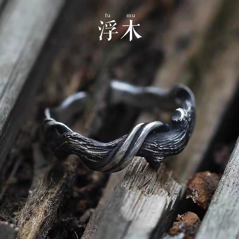 Dickle Wood Ring Men's Fashion Open Men's Single Ring Fashion Couple Women's Rattan Food Ring Tail Ring