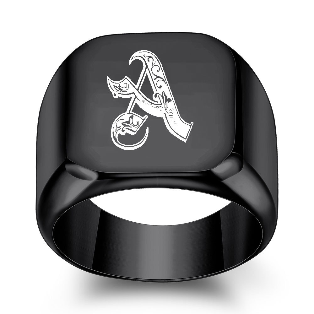 European and American personality 26 English initials titanium steel ring men retro punk square 18MM black tide men wholesale