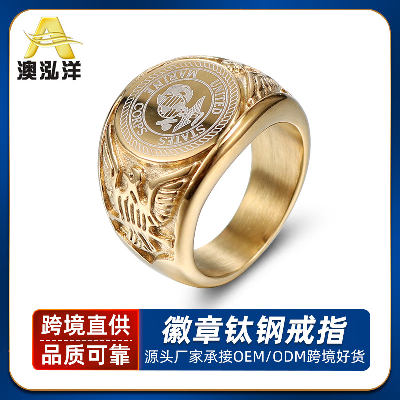 European and American Soldier Badge Titanium Steel Ring Marine Corps Personalized Golden Eagle Stainless Steel Ring for Men HZ112