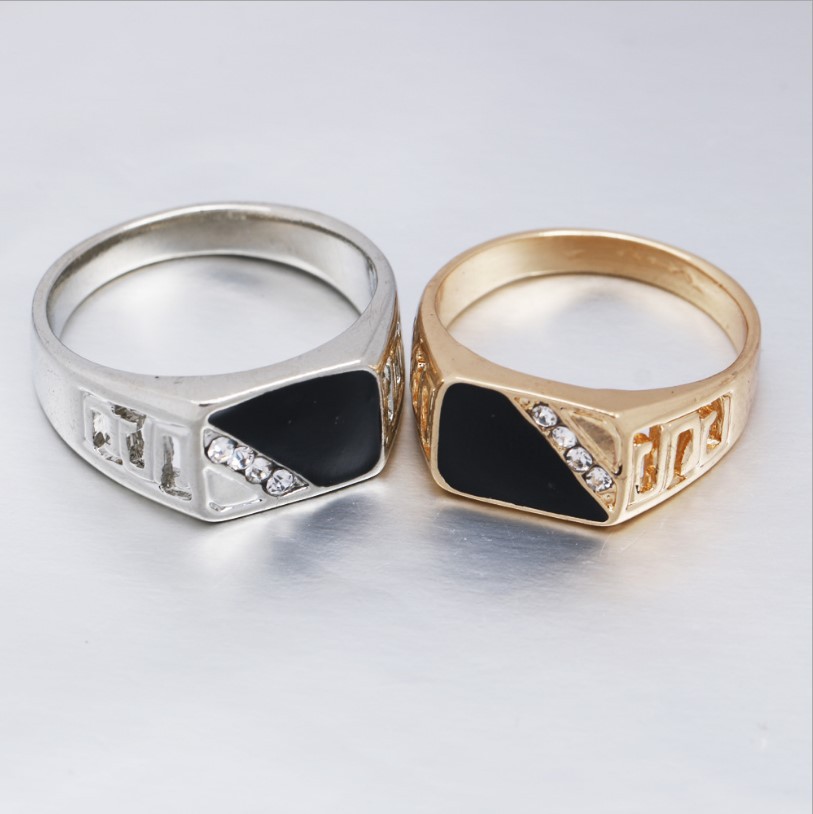 Wish hot sale plated black gold retro men's and women's ring ring set zircon new foreign trade ring manufacturers wholesale