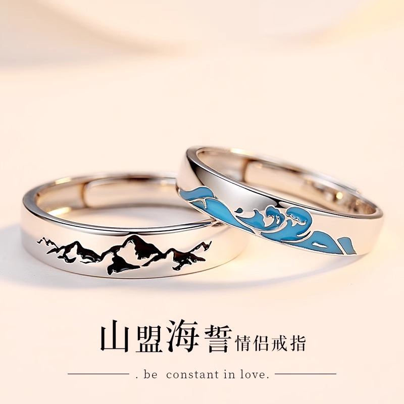 Mountain and Sea Vows Sterling Silver Couple Rings, a Pair of Rings for Men and Women, Niche Design Birthday Gifts for Male and Female Friends