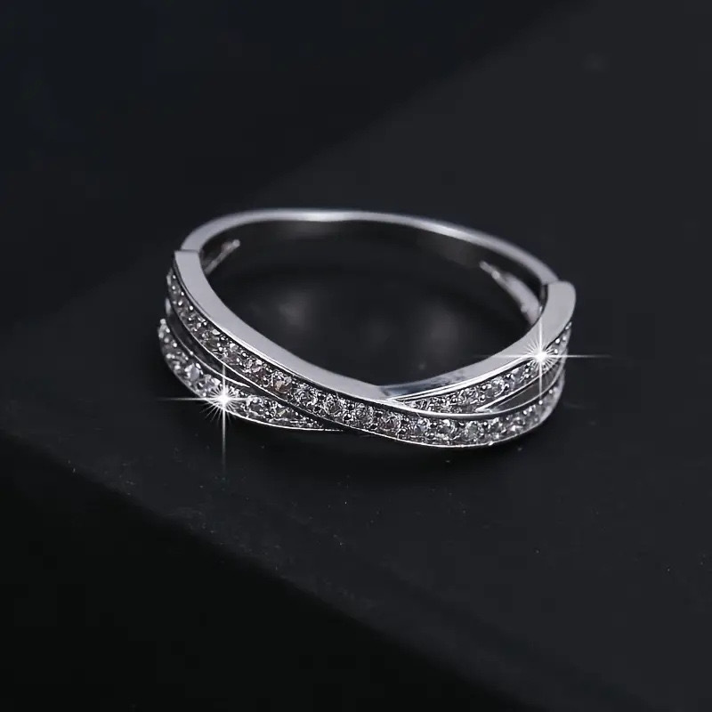 Ebay Cross-Border Popular Hand Jewelry European and American Personalized Cross-Shaped Design Micro-Paved Zircon Popular Rings for Men and Women