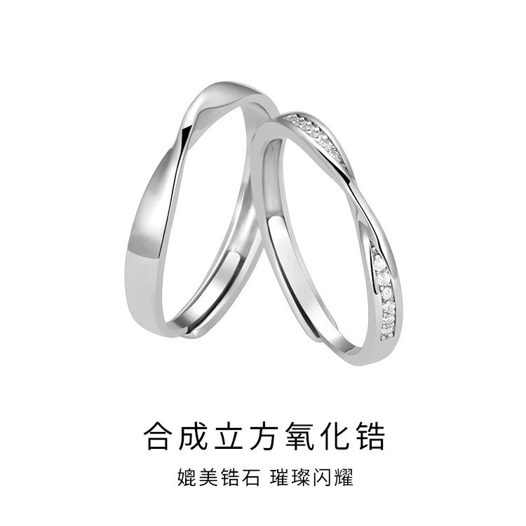 Pure White Copper Color-free Opening Adjustable Glimmer Romantic Couple Ring for Male Girlfriend