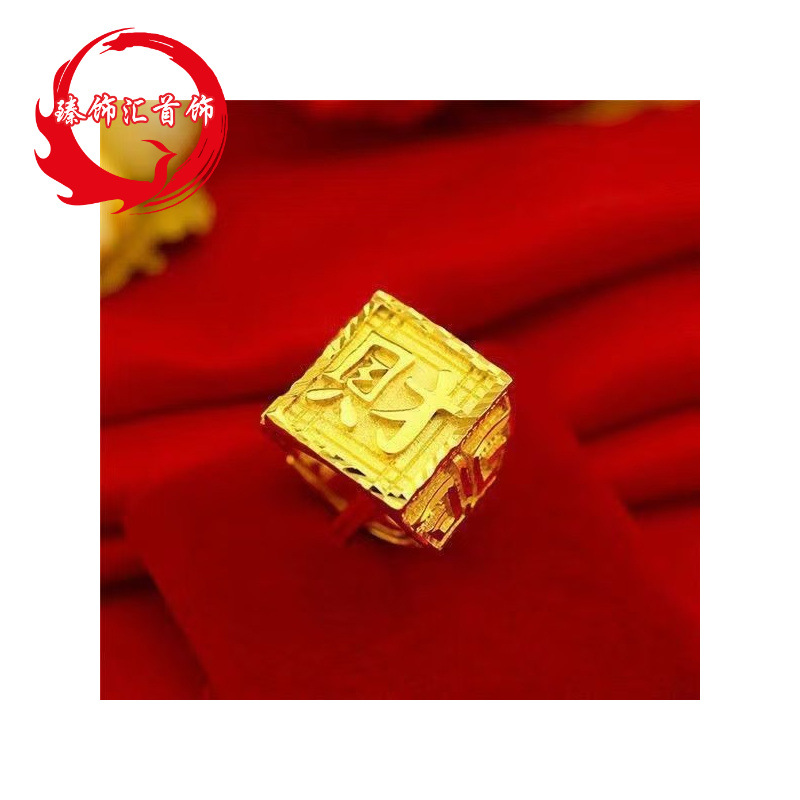 New Fu Fa Cai Men's Gold Plated 24k Fu Character Ring Vietnam Sand Gold Opening Adjusting Loop Imitation Gold Ring