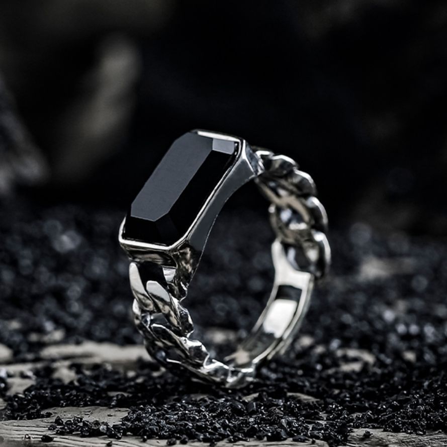 Vintage Distressed Simple Black Zircon Ring Men's Personalized Fashionable Unisex Single Ring Opening Adjusting Ring