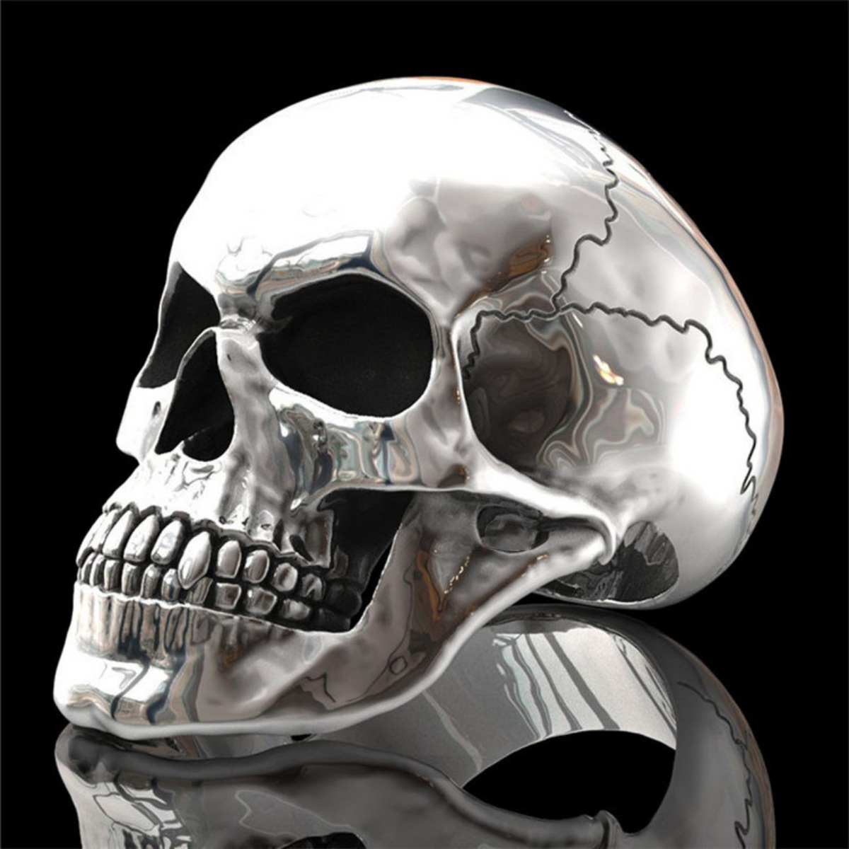 Wish European and American Cross-border Jewelry Hollow Skull Ghost Head Ring Men's Punk Trendy Bracelet Ring