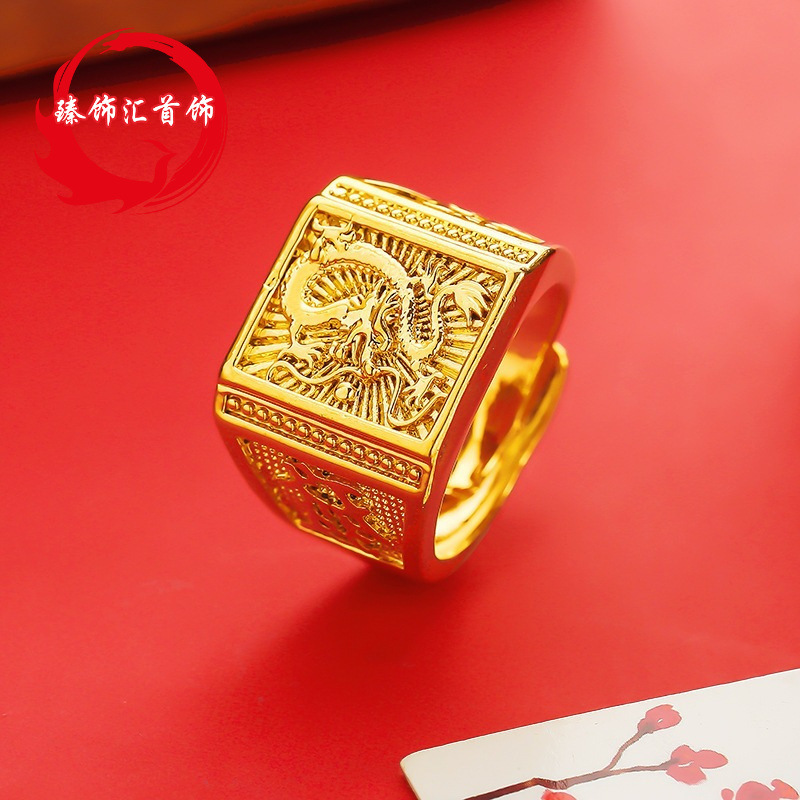 Vietnamese Sand Gold Men's Open-Ended Fortune Dragon Ring, Fashionable and Domineering Men's Brass Gold-Plated Large Dragon Ring, Wholesale Supply