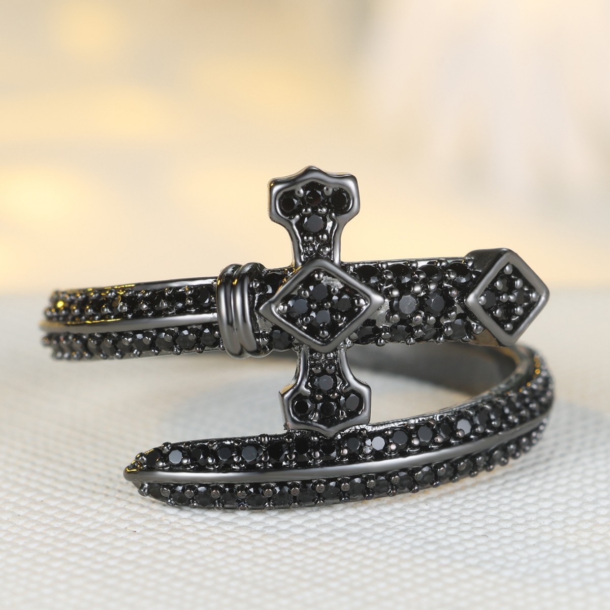 Cross-Border Aliexpress Personalized Black Gold Sword-Shaped Ring Personalized Hip-Hop Gothic Style Hand Jewelry Men's Niche Dark Ring