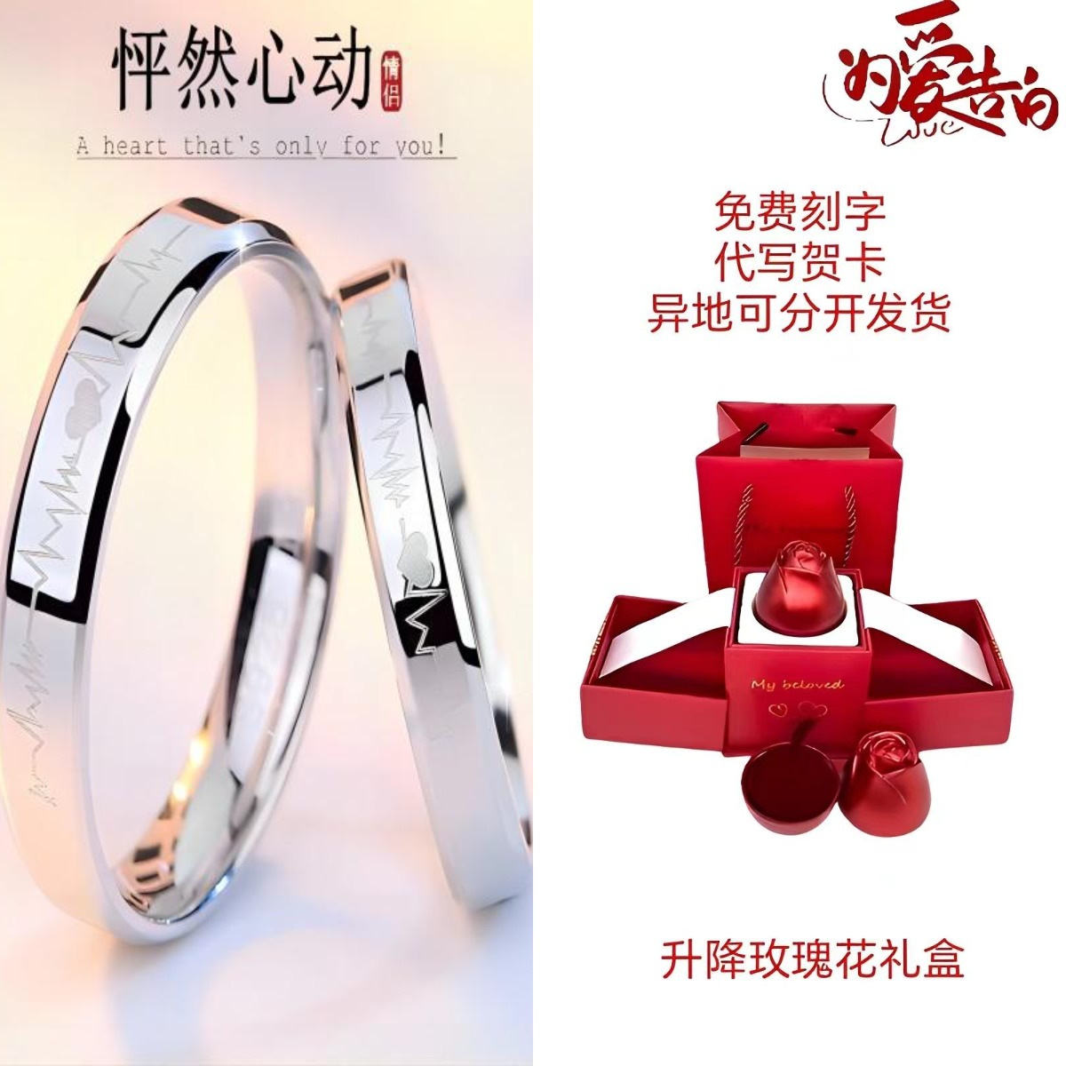 S999 sterling silver ring female heartache couple ring male love ring female niche design electrocardiogram ring