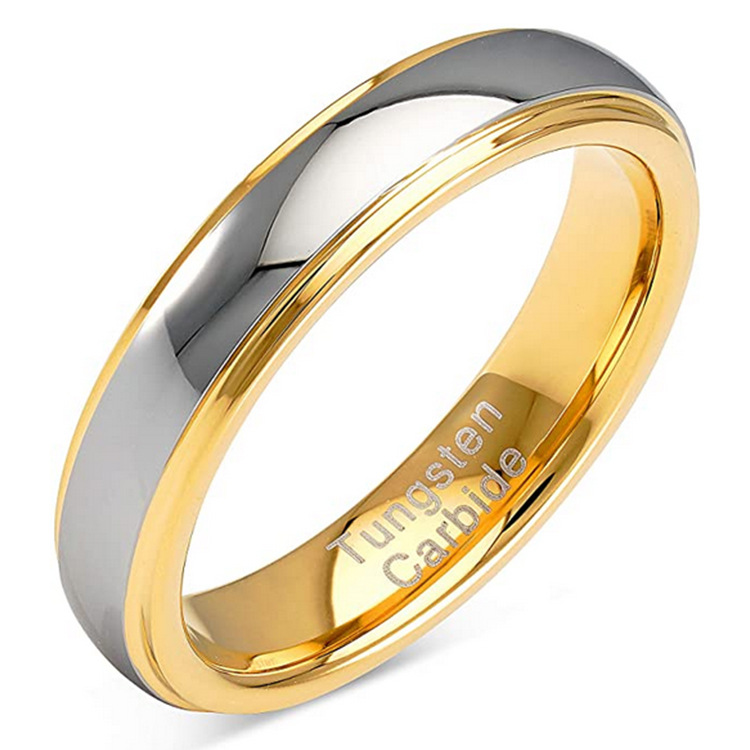 Gold tungsten gold men's and women's jewelry 4mm wide full light step room Gold tungsten steel ring jewelry European and American tungsten jewelry