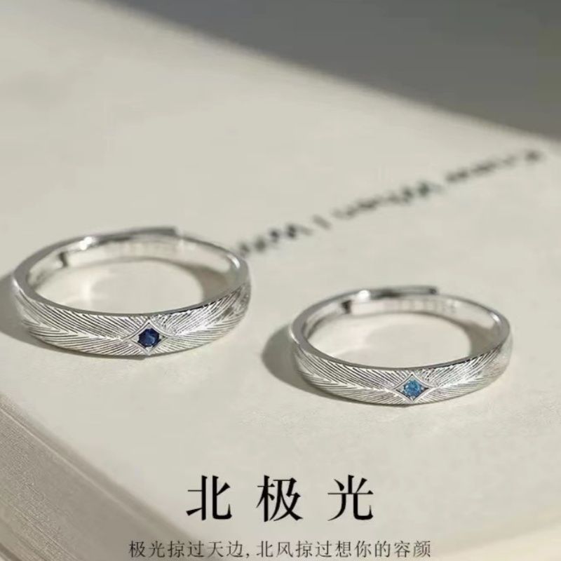 White Copper Northern Lights Couple Rings for Women and Men, Niche Design, High-End Pair of Rings, Open Ring, Factory Direct Sale