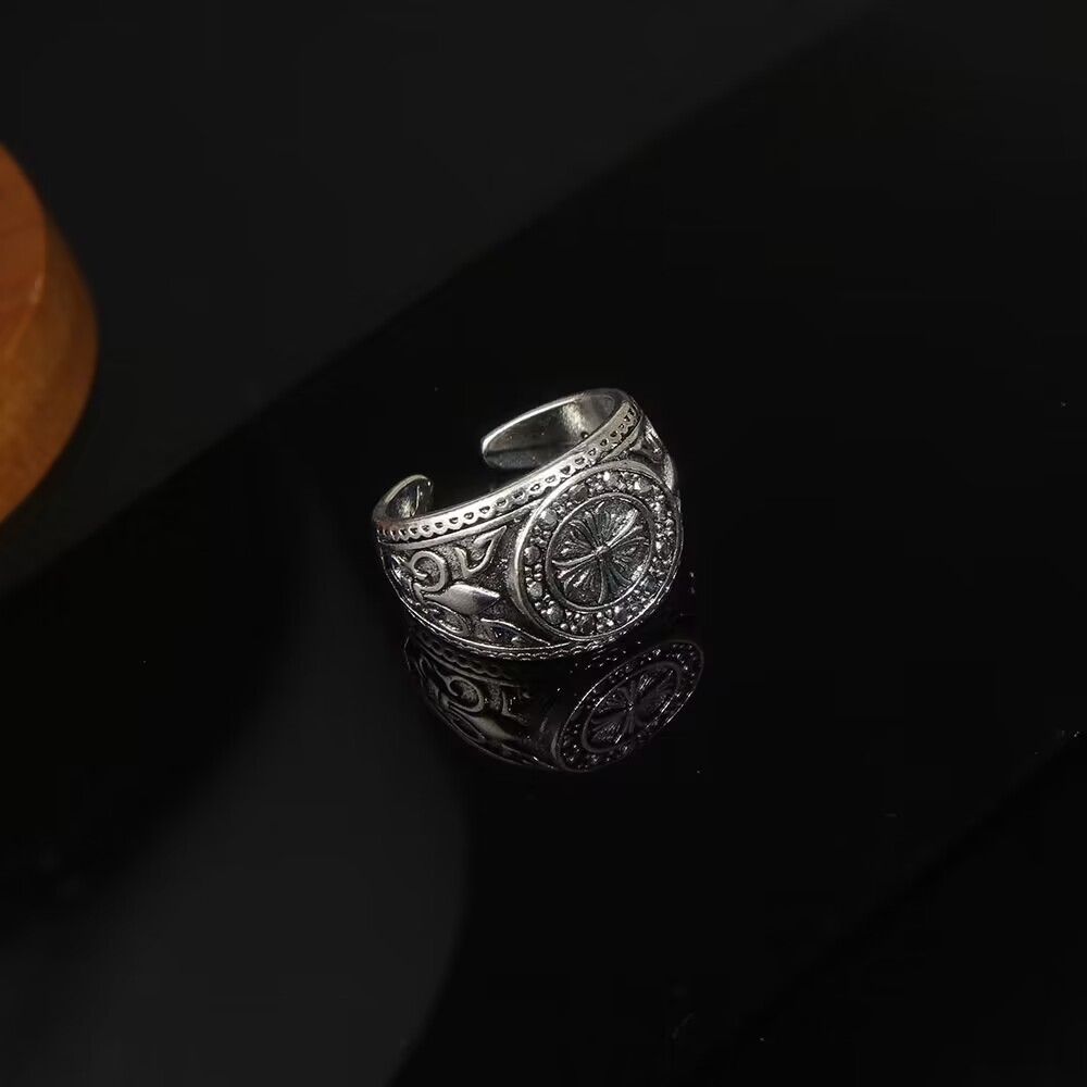Cross-border Supply European and American Retro Old Crusader Flower Silver Ring Personalized Punk Opening Adjustable Men's Ring