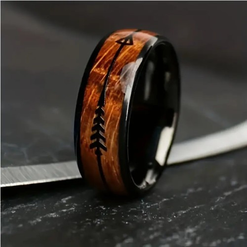 2024 European and American fashion Temu Xiyin men's 8mm wood grain arrow stainless steel ring source factory straight hair