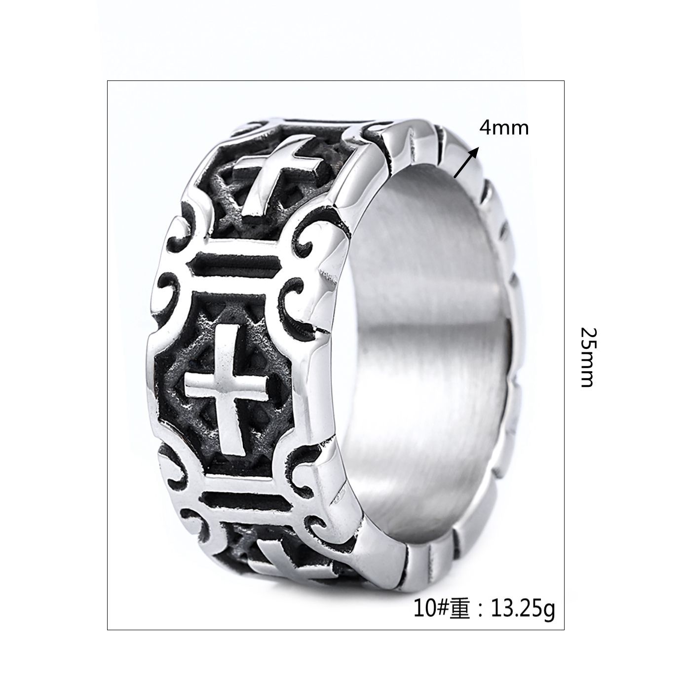 European and American Cross-Border Stainless Steel Rings Men's Personalized Jewelry Engraved Cross Letter Rings Titanium Steel Jewelry Wholesale