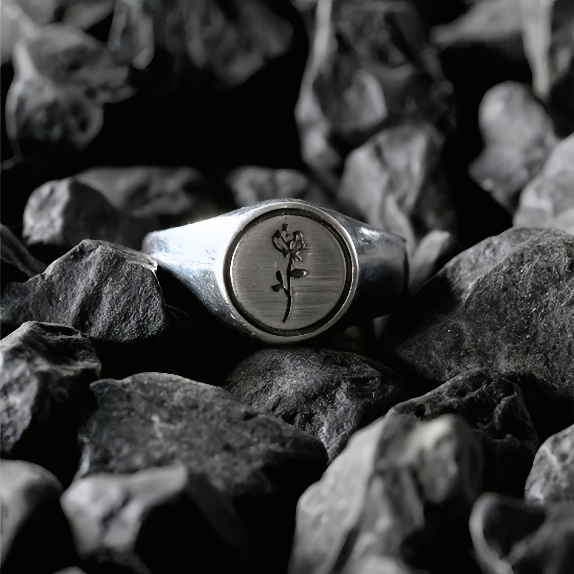 Evening ornament retro code language brushed rose ring opening men's tail ring niche design seal ring female ins