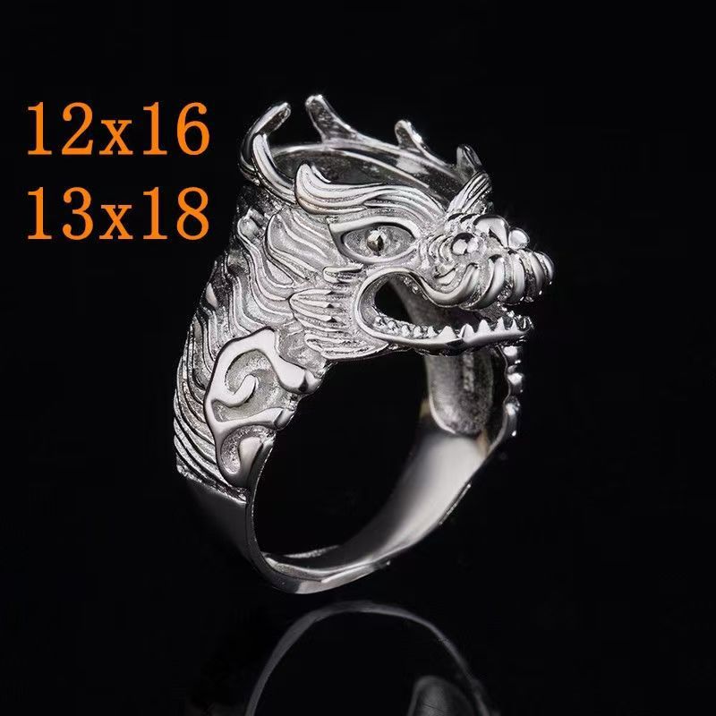 925 Silver Plated Zodiac Dragon Ring Holder for Men, Egg-Shaped Personality, Domineering Punk Stereo Dragon Head Ring