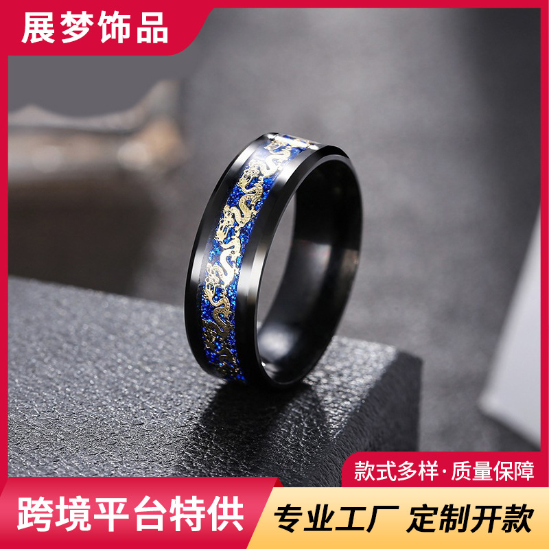 Ethnic Fashion Chinese Dragon Ring Men's Titanium Steel Ring Stainless Steel Ring Men's Fashion Yiwu Jewelry