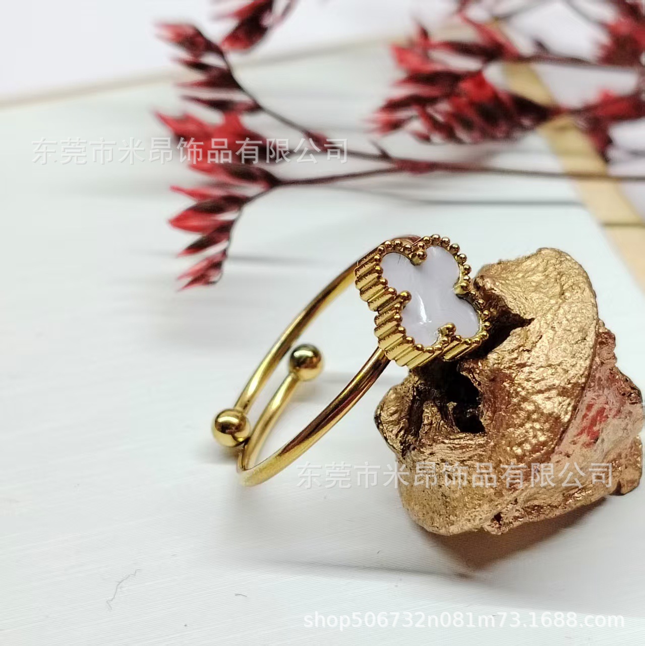 Cross-Border Titanium Steel Four-Leaf Clover Ring for Men and Women, Adjustable Ring Opening, Versatile Fashion Ear Jewelry Wholesale Manufacturer