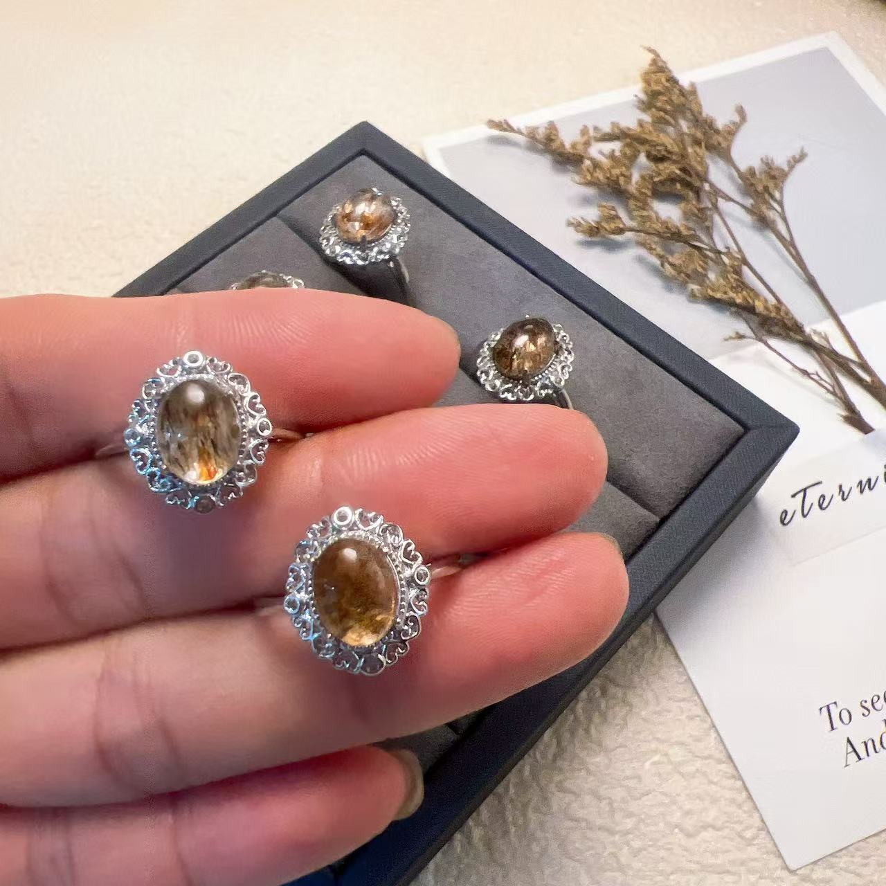 Manufacturer Wholesale Natural Black Super Gold Ring for Men and Women with Adjustable Live Mouth Design Copper Inlaid Tourmaline Jewelry
