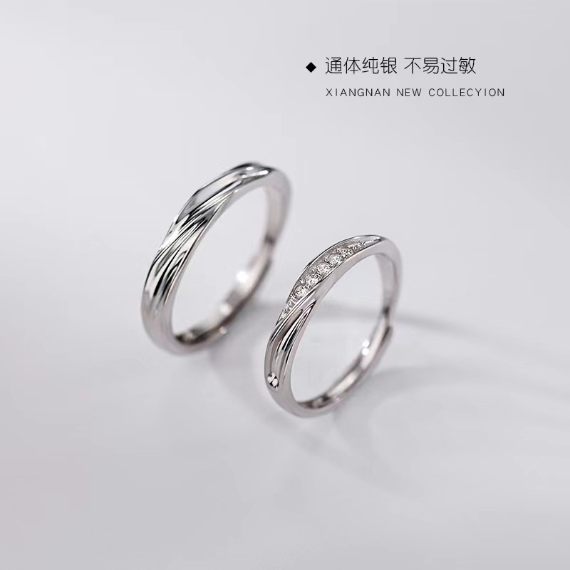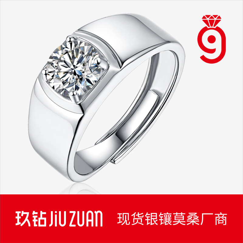 Couple's New S925 Silver Ring Men's Live Adjustable Ring Live Selling Wedding Ring Moissanite Ring