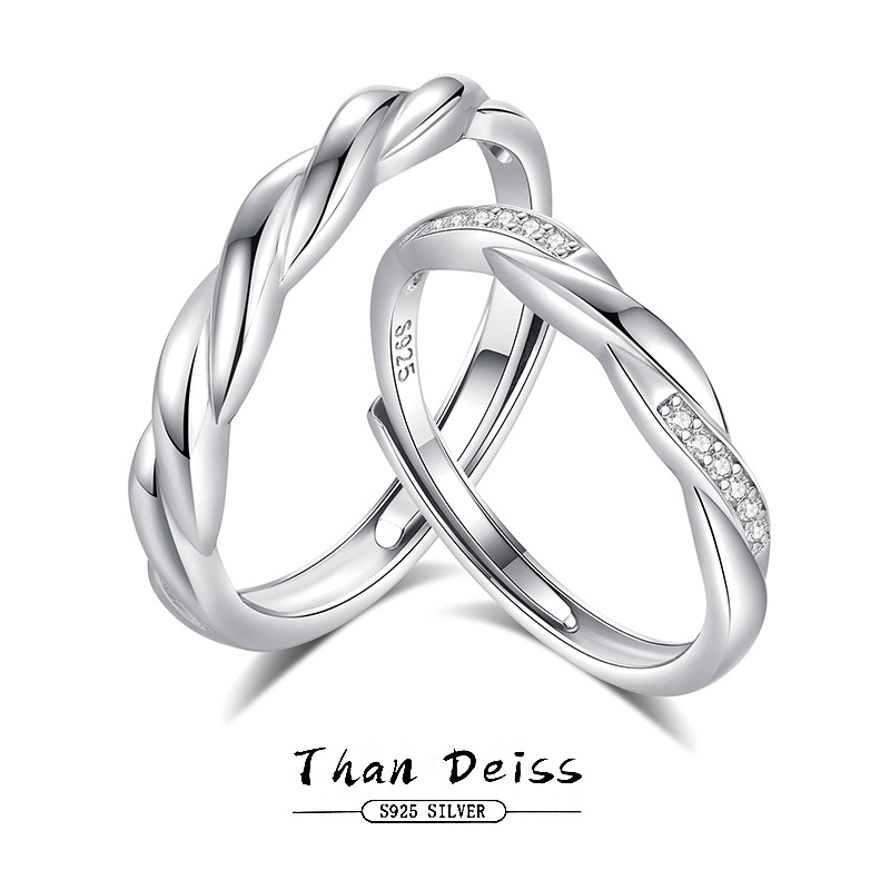 S925 Sterling Silver Couple Ring Men's and Women's High Fashion Valentine's Day Gift Opening Plain Ring