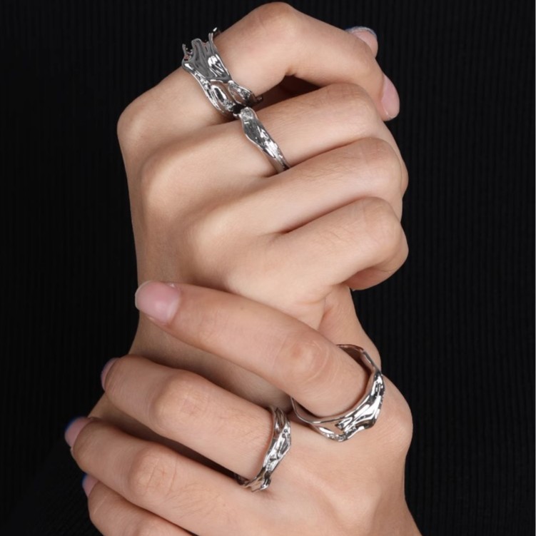 Minimalist Irregular Texture Fashion Retro Trendy Cool Ring for Men Niche Design High-End Light Luxury Open Ring for Women
