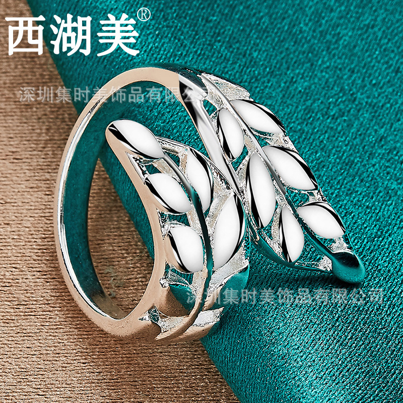 West Lake American silver ornaments leaves open ring men's and women's fashion jewelry