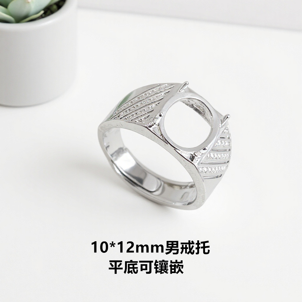 White Copper Silver-Plated 10*12mm Silver Men's Ring with Hollow Brushed Gold-Plated Ring Geometric Type Without Inlay