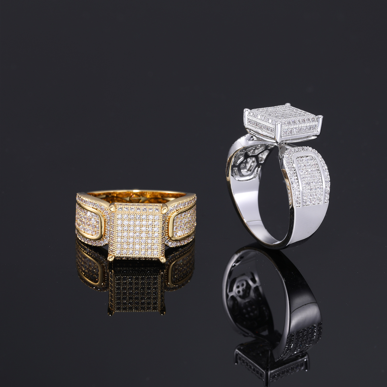 European and American Cross-Border Hip-Hop Men's Trendy Brand Retro Square Zirconium Ring Amazon's Popular Versatile Diamond Ring